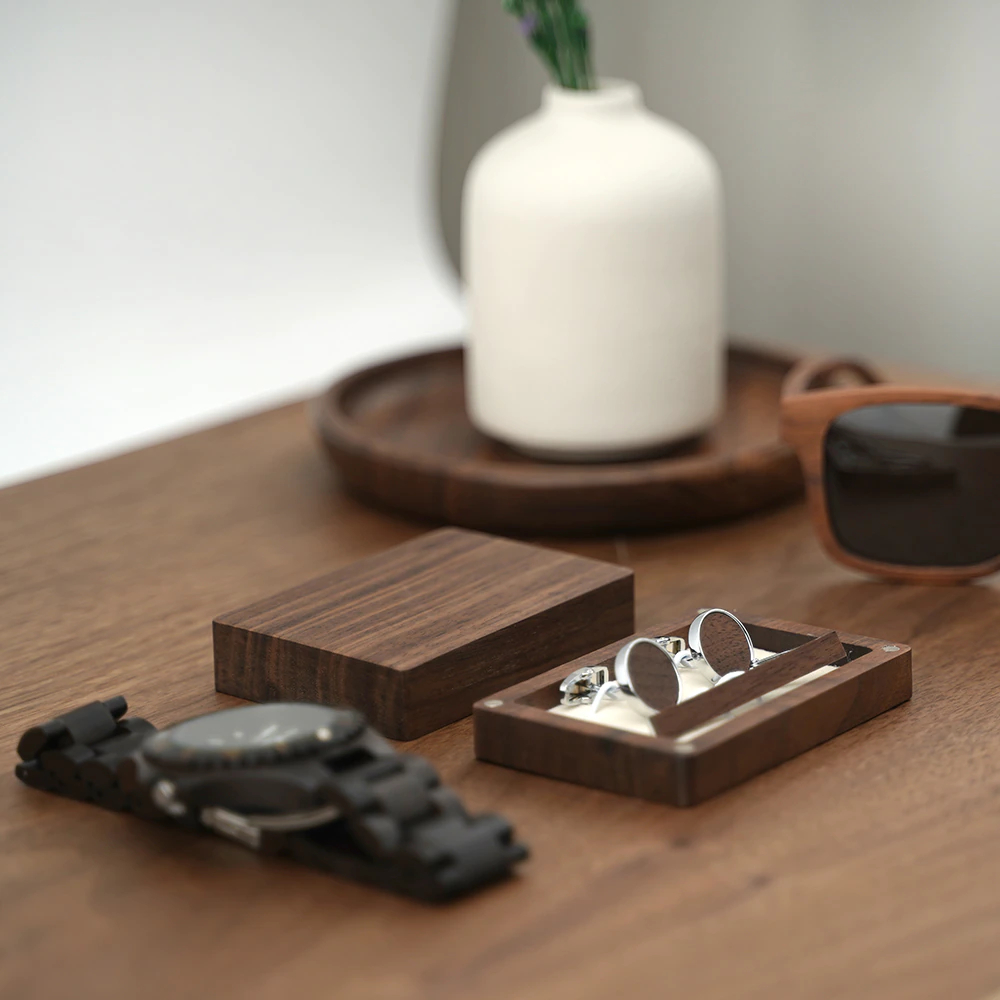 Boutons de manchette en bois foncé : un cadeau premium