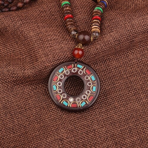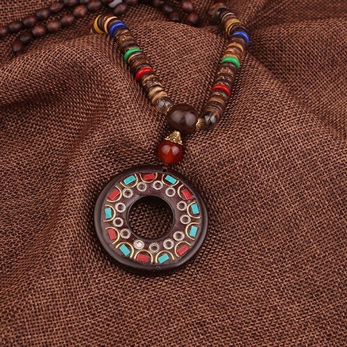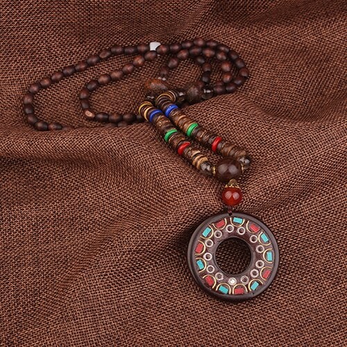 Ce magnifique collier en bois a été fabriqué à la main par un artisan népalais.