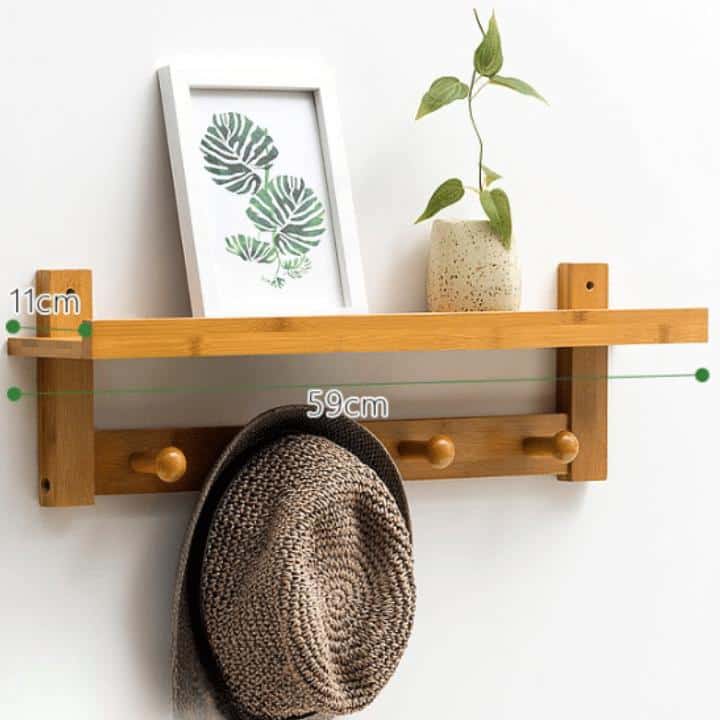 Facile à installer grâce aux supports muraux inclus, ce porte-manteau ne nécessite pas beaucoup d’espace et convient même aux espaces restreints. Ne sacrifiez pas l’esthétisme au profit du rangement, optez pour ce porte-manteau en bois mural avec étagère pour une solution pratique et stylisée !