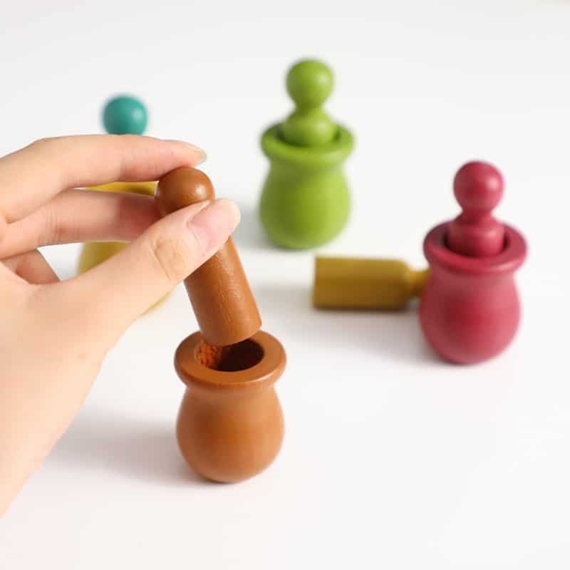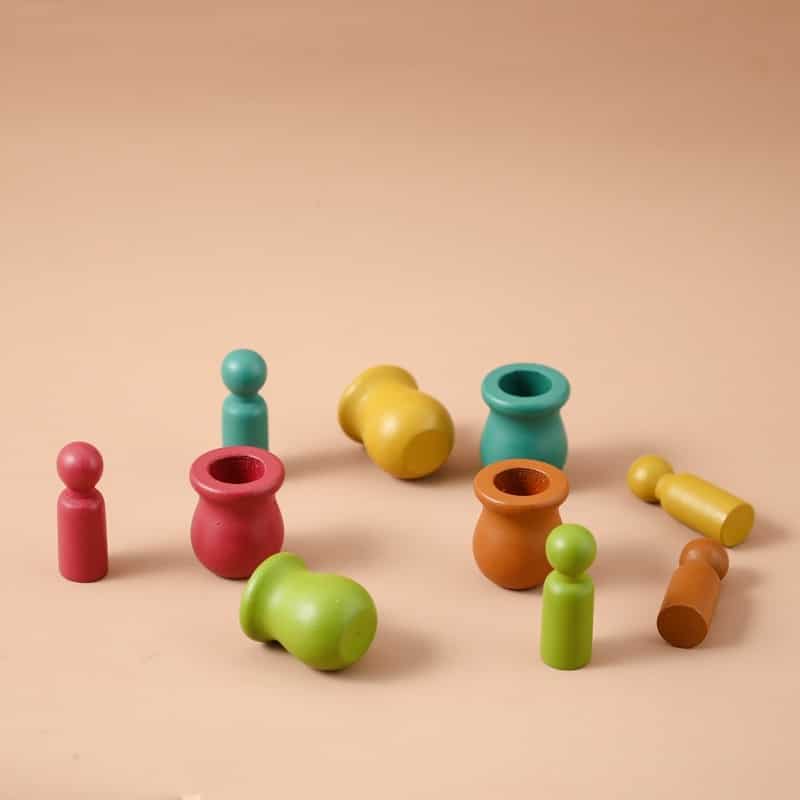 Les poupées en bois sont peinte avec amour en cinq couleurs différentes : rose, bleu, marron, vert et jaune – afin que vos enfants puissent mélanger et assortir leurs poupées pour créer un monde amusant de nouveaux personnages. Utilisez-les pour des pique-niques imaginaires, ou créez une maison forestière pour les fées ! Les enfants pourront laisser libre cours à leur imagination.