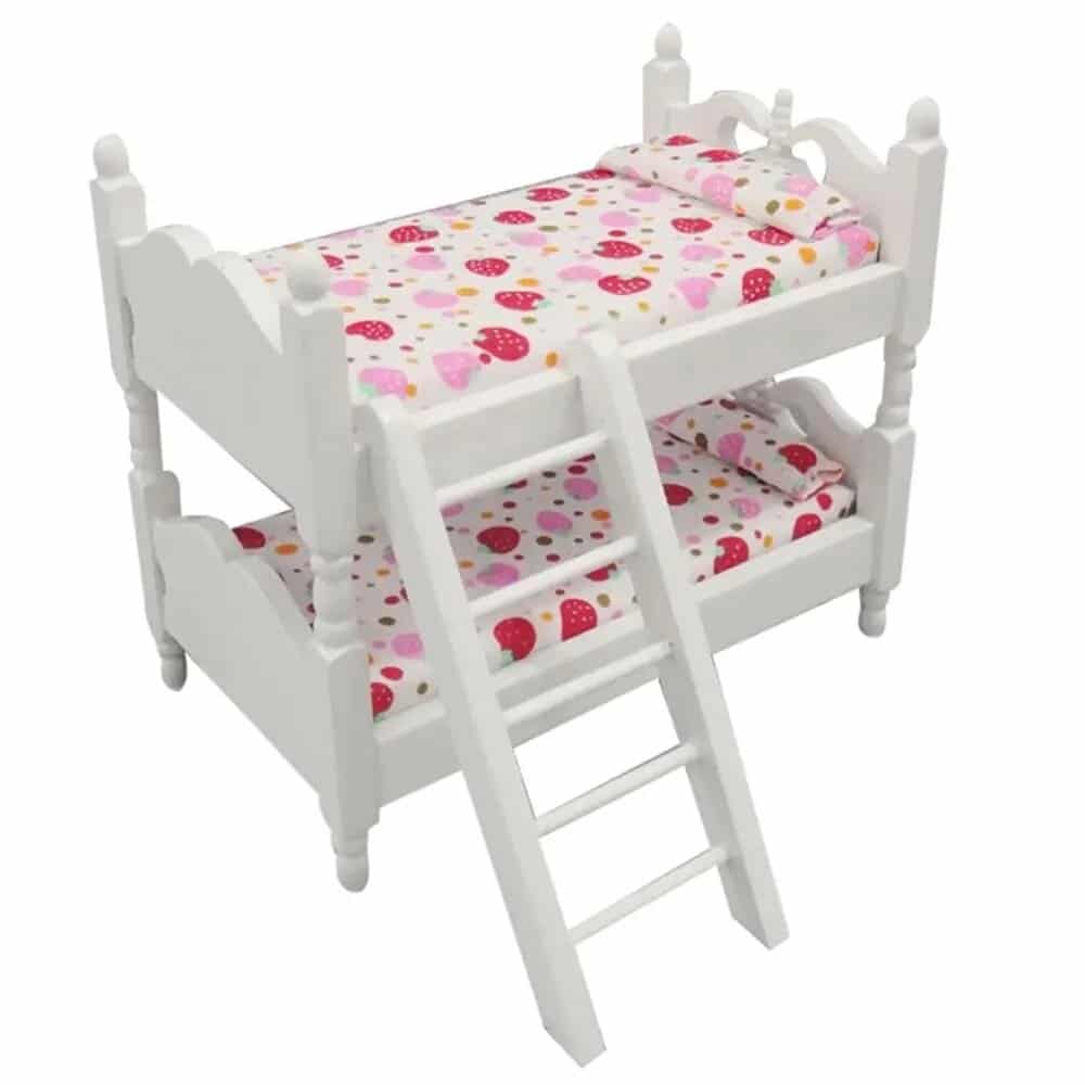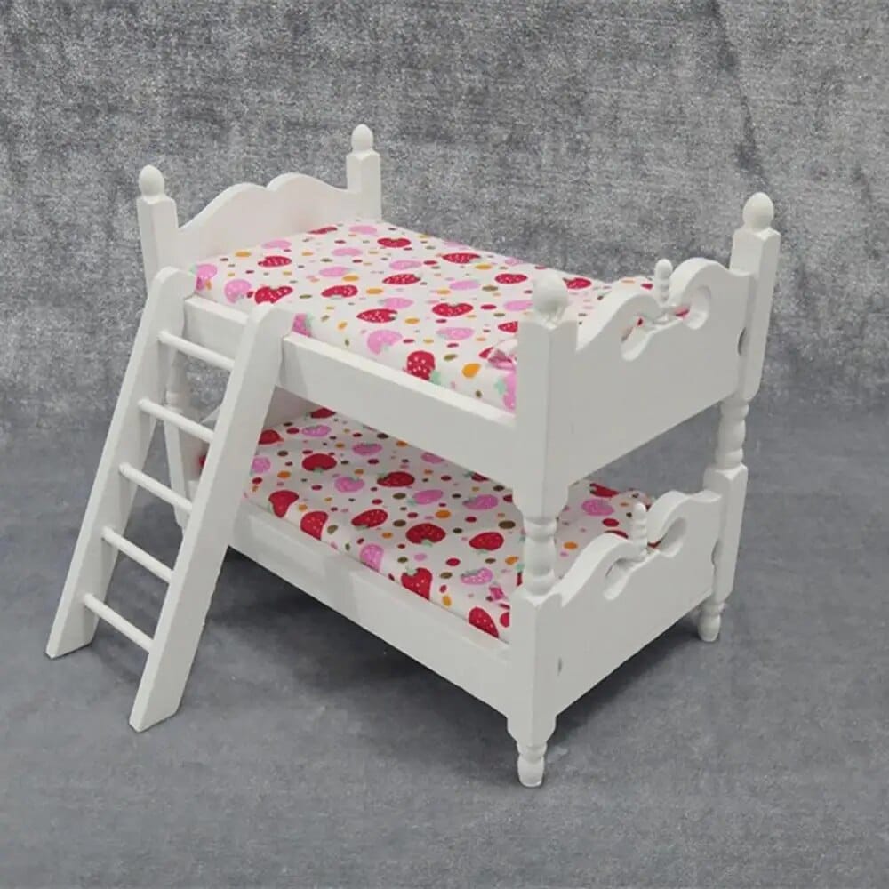 Le petit lit superposé avec échelle et motifs de fruits sur le lit est l’élément central de cette maison de poupée. Il symbolise la camaraderie, l’aventure et la douceur des rêves fruités, le tout dans un design amusant et fonctionnel.